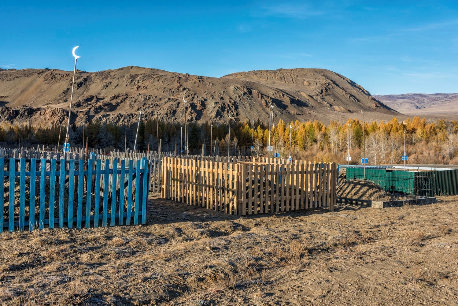 Цветные квадратики внизу справа — это мусульманское кладбище. На следующем снимке хорошо видно. А дорога — Чуйский тракт.