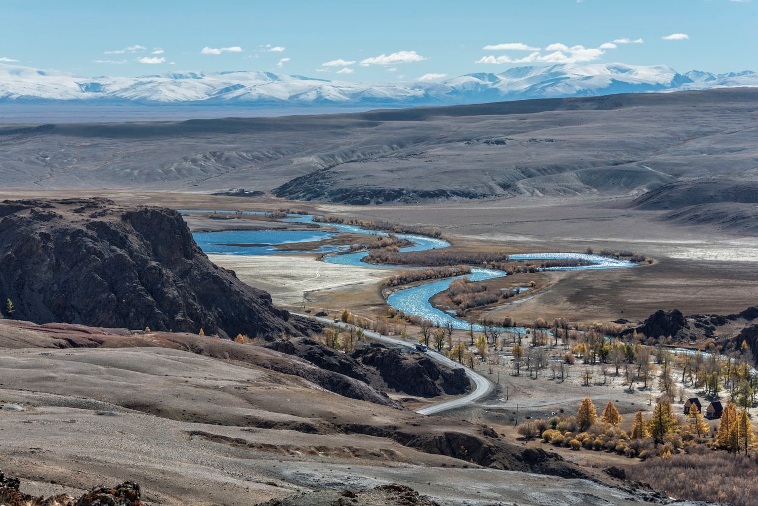А это Курайская долина — дно межгорной котловины, которое находится на высоте 1 500 метров над уровнем моря. Долину окружают Курайский и Северо-Чуйский хребты.